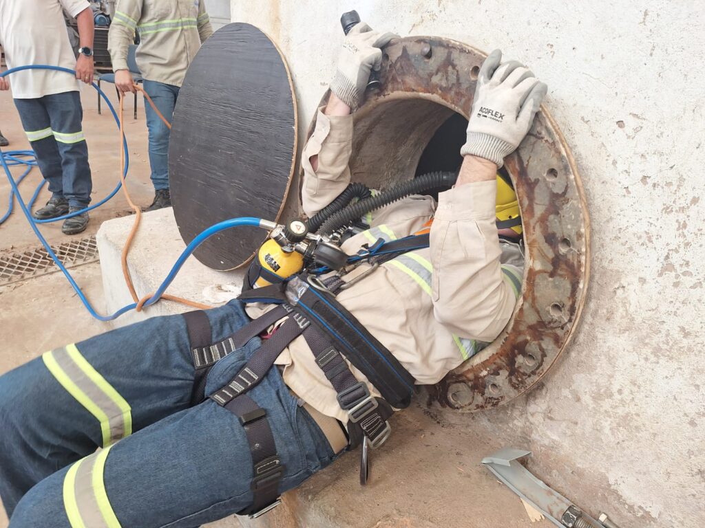 - Simulações práticas com cenários de trabalho em tanques, galerias ou silos; uso de equipamentos de proteção, bombeamento, ventilação e resgate.